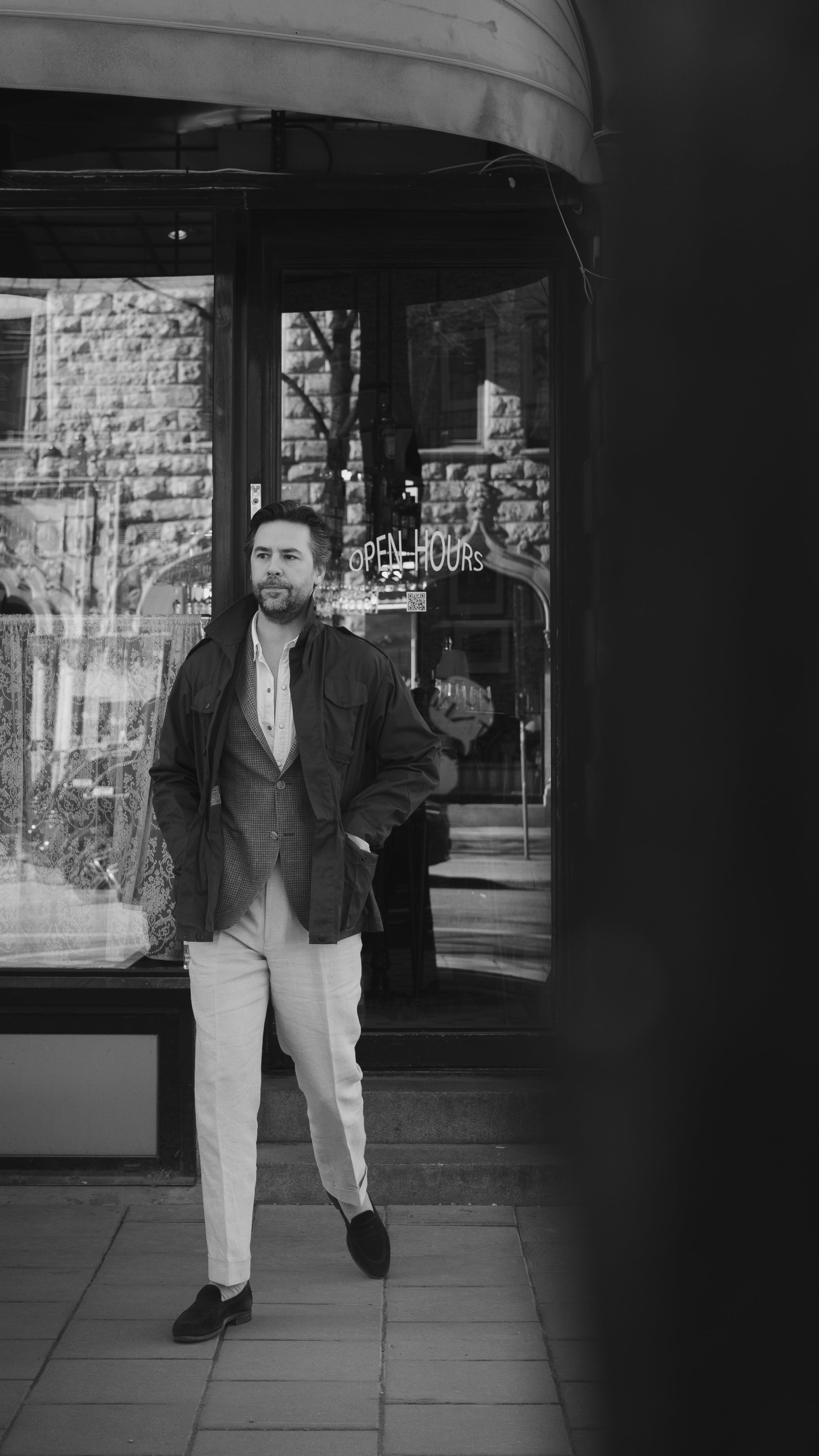 Cotton, linen, and open weaves. Pieces that works great as the days are getting warmer. There’s a softer side to this drop. Unstructured jackets and tailoring, a selection of relaxed trousers, easy shirts and polos.
